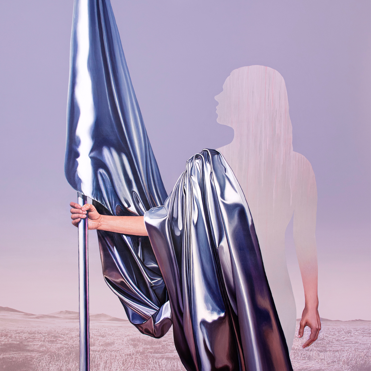 Untitled – metalic flag nº1 / acrylic on canvas / 150 x 150 cm. 2025